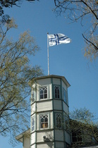 UPS:n lippu nousi jälleen tykinlaukauksen saattelemana paviljongin tornin huippuun purjehdusseuran perinteisessä lipunnostossa Pietarinkarilla äitienpäivää edeltävänä lauantaina. Purjehduskauden avaustilaisuudessa oli mukana nelisenkymmentä seuran jäsentä ja perheenjäsentä. Kommodori Timo Lindström toivotti osallistujat tervetulleiksi ja kertoi samalla myös seuran ja paviljongin tuoreimpia kuulumisia. UPS sai viime vuonna Varsinais-Suomen ELY-keskukselta poikkeusluvan sosiaalitilojen rakentamiseen, mutta haetuista laajennussuunnitelmista poiketen erillisenä yksikerroksisena rakennuksena. Syksyn kokouksissa lupa herätti kahdenlaista ilmaa – rakennetaanko uusi, erillinen wc- ja suihkurakennus vai korjataanko sittenkin nykyisiä tiloja. Jatkosuunnitelmia pohditaan nyt seuran perustamassa toimikunnassa eikä päätöksiä vielä ole tehty, kertoi Lindström. Töitä on silti tehty sekä Pietarinkarilla että UPS:n muissa kohteissa. Paviljongille on vedetty uusi sähkökaapeli ja saaren itärannalle on tuotu entistä isompi ponttonilaituri, jonka lankonki vielä on työn alla. Myös sisätiloja on kunnostettu, mutta ulkopuolikin kaipaisi kipeästi kunnostusta, totesi Lindström. Syksyn ja talven aikana UPS:n talkoolaiset ovat uurastaneet seuran pienemmässä saaritukikohdassa Kirstankarilla. Sinne on viety uusi puuvaja ja kompostikäymälä. Saarta on raivattu ja viimeksi sinne on hinattu ponttonilaituri, joka paviljongilta vapautui. Myös Ykskoivun telakka-alueen kehittäminen etenee. Juniorien tukikohdan lisäksi sinne ollaan hankkimassa nosturia, joka palvelee etenkin seuran kilpailutoimintaa. Suunniteltu nosturi soveltuu pienten veneiden nostoon ja mastojen pystytykseen. |