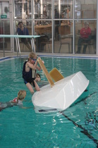 Makkaransyönnin jälkeen hiihtoputkesta siirryttiin uimahallille, jossa Pauliina Ajanko kertoi reilun pelin merkityksestä ja muistutti, että harrastamisen tulee olla kivaa sekä itselle, että kaverille. Altaille siirryttäessä Pauliina opasti Markus Reinikaisen kanssa optimistijollan kaatamista ja pystyyn nostoa. Lisäksi oli järjestetty temppurata. Allasosuuden päätti jälleen leikkimielinen kilpailu, jossa laskettiin mahdollisimman nopeasti vesiliukumäkeä. Päivä oli onnistunut ja järjestelyt sujuivat loistavasti. Pientä yhteistoimintaa seurojen väliseen junioritoimintaan viriteltiin. On kivempi kisata ja treenata, jos on enemmän porukkaa. Nyt odotamme kevättä, jotta optimistijollatreenit voidaan jälleen aloittaa. UPS ottaa tänäkin vuonna mukaan uusia aloittelijoita. Haluamme myös kiittää niitä yrityksiä, jotka lahjoittivat palkintoja kilpailuihin sekä Vahterus Ringiä että uimahallia hyvin sujuneista järjestelyistä.