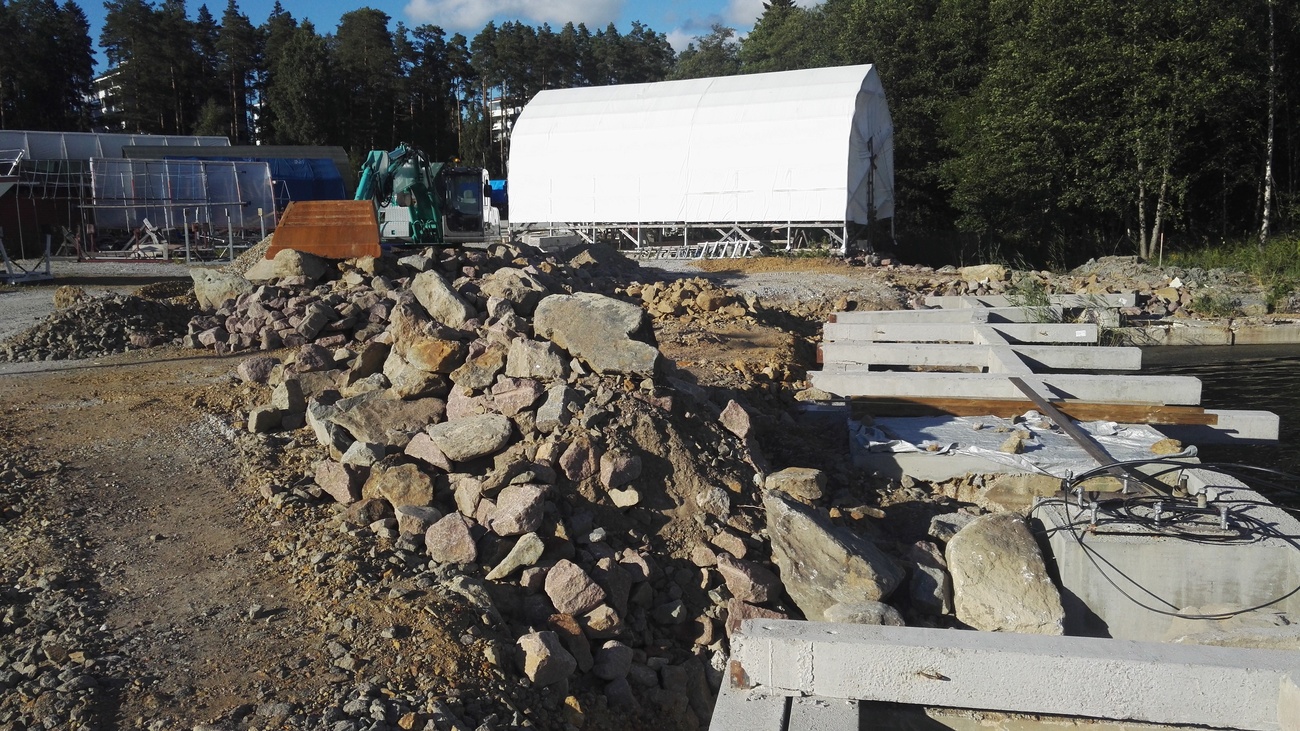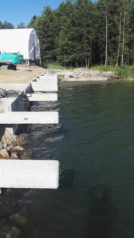 2 tonnin nosturin alusta on nyt valettu 99% ja valmius nosturin asennukseen pyritään saamaan elokuun lopun aikana ja samalla nosturin asennus paikoilleen sekä sähkö, vesi ja valvonta sekä tarkastukset jonka jälkeen saamme nosturin seuran käyttöön. Tavoitteena on saada tuo nosturi nyt käyttöön syksyksi pienempien veneiden, Sydväst jollien, mastojen ja laitureiden nostoon. Vesiputket ja kaapelit on kaivettu ja vielä pitää kuljettaa nuo punaisen hallin alta kytkentäpisteilleen. Reunalaiturin perustukset on nyt rakennettu teräsbetonipaaluista itäsivulle ja junnualuetta on täytetty ylitsejääneellä maalla. Samoin junnualueen reunalle upotettiin kaksi vanhaa ponttonia reunaksi jotta junnuille saamme riittävän syväyksen tulla laiturin reunalle köli ja peräsin alhaalla. Rumpu ja ajotie on nyt valmiina ja tarkoituksena on että syksyn / talven aikana saisimme täytemaata junnualueelle ja keväällä ennen kauden alkua aloitamme junnualueen laiturin rakentamista talkoilla tavoitteena saada ainakin osa junnualueesta käyttöön jo ensi kesäksi. Ponttonilaiturin rakentaminen on myös suunnitelmissa mutta talkooväkeäkin tarvitaan. Lisäksi reunalaituria tehdään pieni osuus nosturin edustalle valmiiksi vielä ennen nostokautta jotta veneet / laiturit saadaan nosturin viereen siististi. Nyt myös jätetään tilaa jollien kuljetusta varten n.4m punaisen hallin ovesta uudelle junnualueelle päin. Samoin n.5m tila jätetään venekatoksen vierestä junnualueelle jotta kuorma-autoilla ja työkoneilla päästään kulkemaan. Liitteenä muutama kuva Kotisatamasta elokuun alusta 2017.